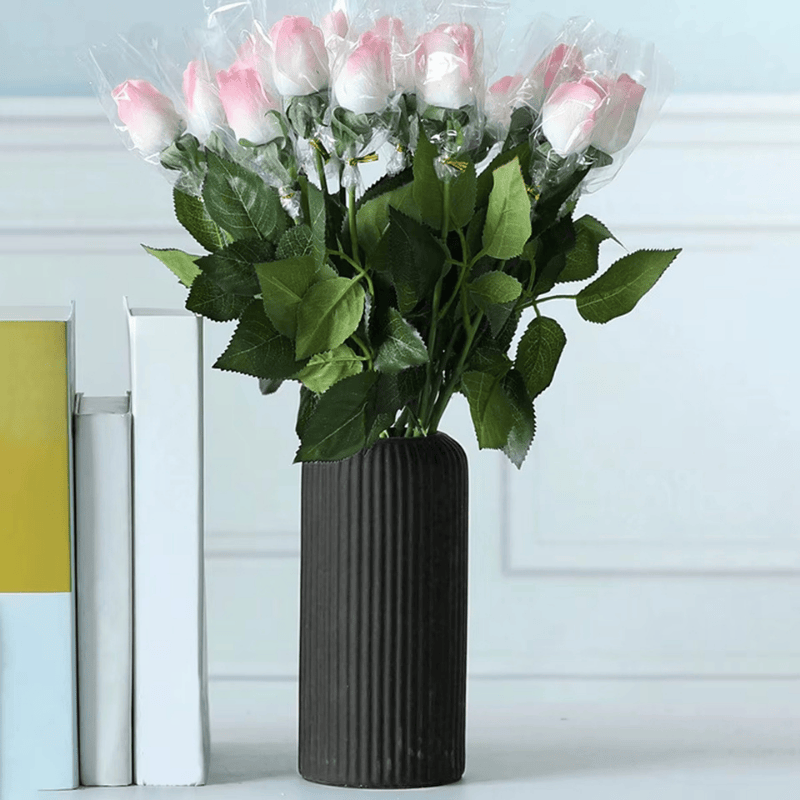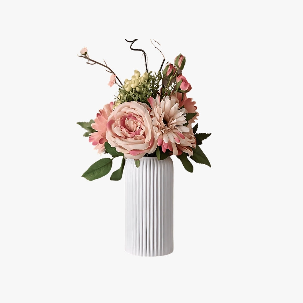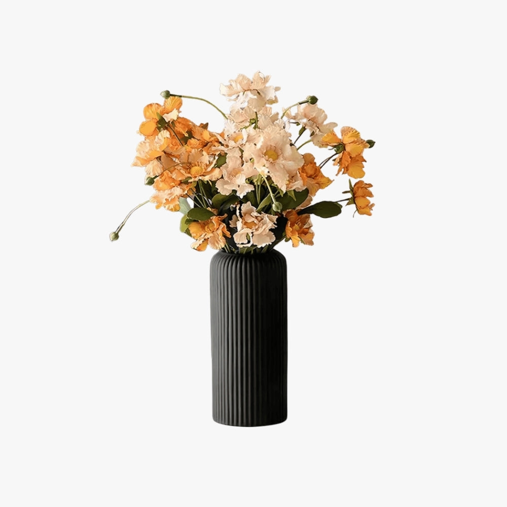 Tidlös cylinderform med vertikala räfflor som ger samma elegans som glaserad keramik – men i tålig plast som inte spricker om den tappas. Passar lika bra för färska buketter som för torkade gräsarrangemang.