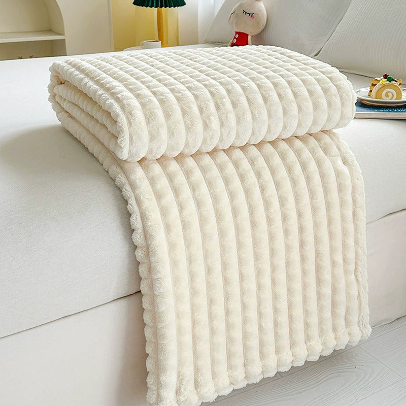 Låt dig svepas in i total komfort med vår lyxiga ribbade pläd. Den är tillverkad i supermjuk mikrofleece som känns lika mjuk mot huden som den ser ut – perfekt för svala kvällar, lata helgmorgnar eller som en elegant i soffan eller sängen.